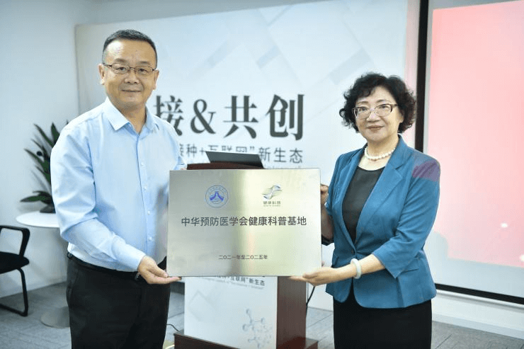 会上,中华预防医学会副会长梁晓峰代表学会宣读了《关于同意优德w88作为中华预防医学会健康科普基地的函》。中华预防医学会副秘书长张伶俐向三代人科技董事长助理、副总经理李黎授予“中华预防医学会健康科普基地”牌匾。